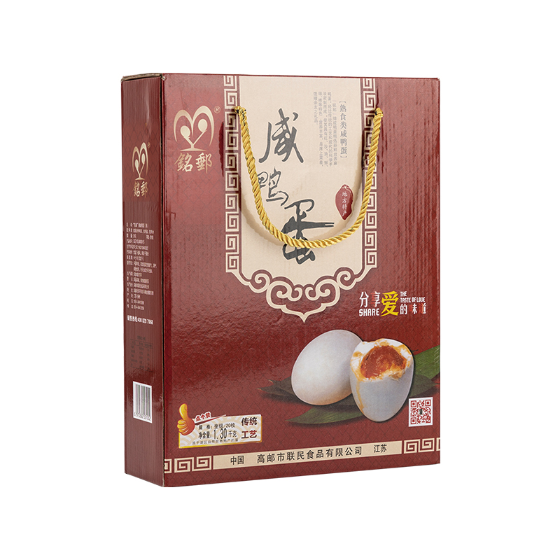 高郵市聯民食品公司成立于2012年,坐落在魚米之鄉,一蛋雙黃,好事成雙的鴨蛋原產地高郵,專注鴨蛋行業(yè)很多年,目前致力于三家知名上市食品企業(yè)OEM代加工、和南京、常州、安徽、蘇州、優(yōu)質食品企業(yè)深度合作及自主品牌線下代理商和線上的業(yè)務模式,精心深度加工麻鴨咸鴨蛋,專業(yè)生產咸蛋黃,精心做蛋的其他多種產品,公司擁有資深的研發(fā)團隊,有系統的研究和質量控制中心,建設了有通風功能,高效殺菌的恒溫腌制車間,具有專業(yè)的大型蛋品生產設備,擁有8000平方米的生產車間,服務全國客戶超千萬枚的蛋制品,生產的“銘郵”牌系列蛋品選用當地優(yōu)質的高郵鴨蛋為原料,采用傳統秘制工藝及現代加工技術恒溫腌制而成。長年供應,品種齊全。具體規(guī)格:55克、60克、65克、70克、75克、80克的咸鴨蛋及松花蛋,70克、80克、90克、100克以上的雙黃蛋及各種規(guī)格的咸蛋黃。希望各界伙伴和企事業(yè)單位共同就高郵蛋,攜手共贏!..